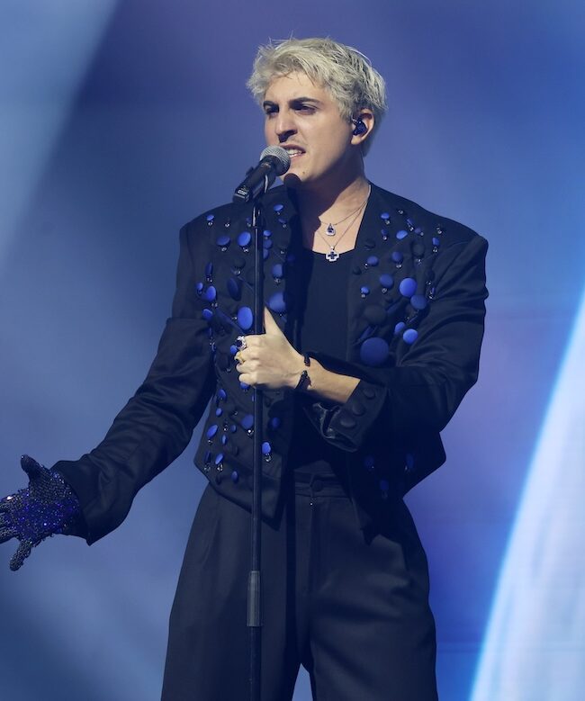Λίγο αργότερα, στο video wall προβλήθηκαν φωτογραφίες από την περίοδο που είχε πετρόλ μαλλιά, με τον Φάνη να τον ρωτά γιατί επέλεξε το μπλε. «Μου αρέσει το μπλε. Έχει το περισσότερο εύρος επικοινωνίας συναισθημάτων. Έχει τα πάντα», απάντησε χωρίς δεύτερη σκέψη.