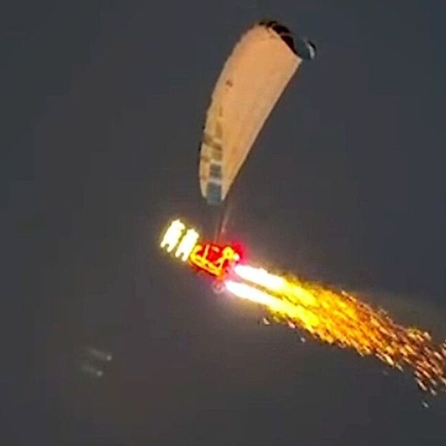 Μια όμορφη έκπληξη περίμενε τους περιηγητές Χριστουγεννιάτικης αγορά στην πόλη Ράντζιμιν της Πολωνίας, στις 8 Δεκεμβρίου, όταν αλεξιπτωτιστής Άγιος Βασίλης κατέβηκε ουρανοκατέβατος!