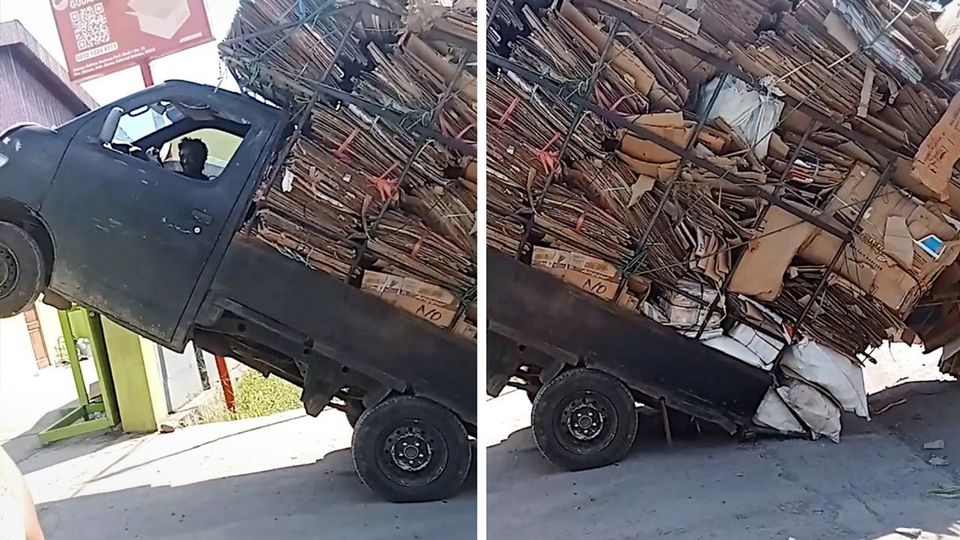 Παραήταν αισιόδοξος ένας οδηγός στο Σουλαουέσι της Ινδονησίας στις αρχές Μαΐου. Ο οδηγός φόρτωσε το ημιφορτηγό του χαρτόνια φτάνοντας σε επικίνδυνα μεγάλο ύψος αλλά διατηρώντας με κάποιο τρόπο την ισορροπία του οχήματος. Μέχρι την στιγμή που το ημιφορτηγό έπρεπε να περάσει μικρό σαμάρι για να φτάσει στον προορισμό του…