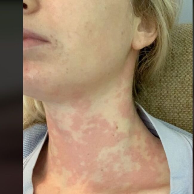 Αυτό μπορεί να κάνει το δέρμα να γίνει κόκκινο, πρησμένο και να προκαλέσει φαγούρα, και μπορεί επίσης να δημιουργήσει συσσώρευση βλέννας στους αεραγωγούς, οι οποίοι στενεύουν.