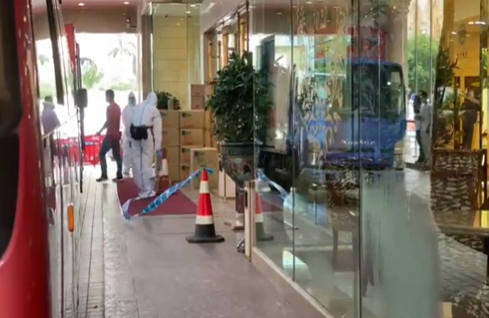 Οπτικό υλικό που περιήλθε στην κατοχή του τηλεοπτικού δικτύου δείχνει αστυνομικούς με προστατευτικές στολές να σφραγίζουν το συγκρότημα για να αποτρέψουν τους πελάτες από το να εξέρχονται ή να εισέρχονται στους χώρους του.