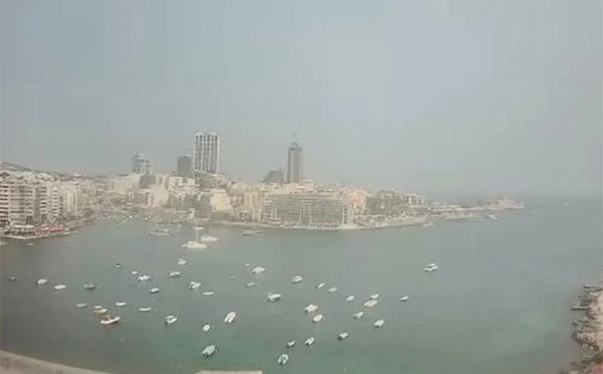 Ακολουθεί εικόνα από την κάμερα καιρού στην Σλιέμα της Μάλτας, όπου διακρίνεται η περιορισμένη ορατότητα στο λιμάνι της πόλης.