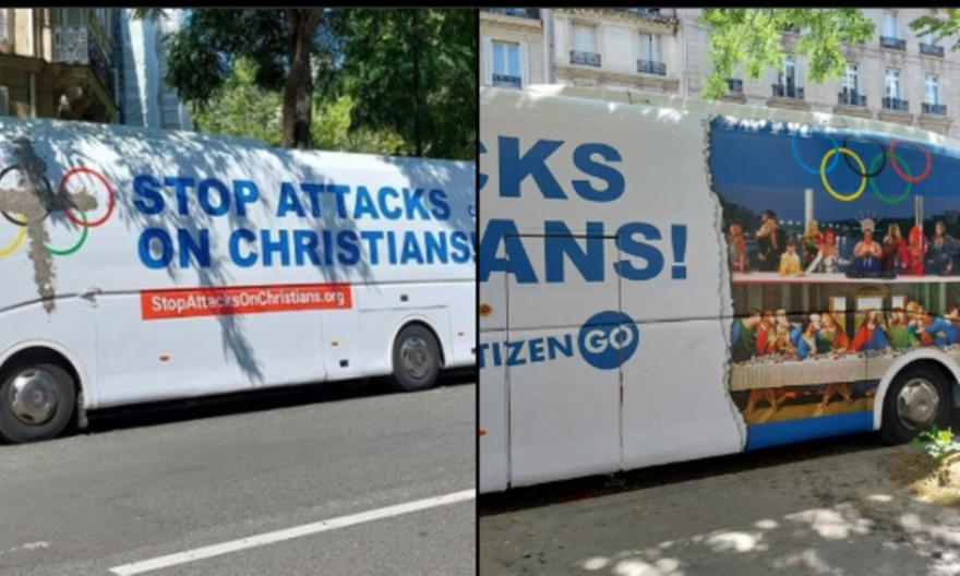Με αφορμή αυτό λοιπόν, μια ομάδα ακτιβιστών από την Ισπανία «έντυσε» ένα λεωφορείο στα χρώματα των Ολυμπιακών Αγώνων και των Ολυμπιακών κύκλων το οποίο και κυκλοφόρησαν στους δρόμους του Παρισιού, βάζοντας από τη μια πλευρά μια εικόνα από την Τελετή Έναρξης των Αγώνων και μία από τον «Μυστικό Δείπνο». Από την άλλη πλευρά του οχήματος, υπήρχε ένας μεγάλος σταυρός και η επιγραφή: «Σταματήστε τις επιθέσεις σε Χριστιανούς».
