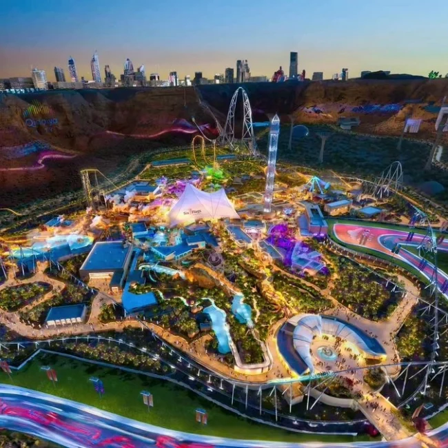 Στο σκέλος της ψυχαγωγίας, τα μεγέθη εντυπωσιάζουν: 400 αξιοθέατα, δεκάδες θεματικά πάρκα και το Falcons Flight, το υψηλότερο, ταχύτερο και μακρύτερο τρενάκι λούνα παρκ στον κόσμο. Παράλληλα, η πόλη θα φιλοξενεί 43 αθλητικές εγκαταστάσεις και περισσότερες από 73.000 θέσεις για εκδηλώσεις.