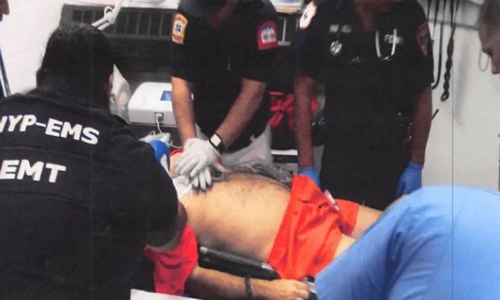 Μία από τις αναφορές, με την ετικέτα «EFTA00134598» από το Υπουργείο Δικαιοσύνης, δείχνει τον Επστάιν με την πορτοκαλί ενδυμασία της φυλακής σκισμένη καθώς ένας διασώστης προσπαθεί να του κάνει ΚΑΡΠΑ. Ο Επστάιν έχει κολλημένα στο γυμνό στήθος του ηλεκτρόδια που βρίσκονται στα κιτ ΚΑΡΠΑ, ένα νάρθηκα λαιμού και μια φιάλη οξυγόνου δεμένη στο φορείο του, με έναν διαφανή σωλήνα να οδηγεί στο στόμα του.