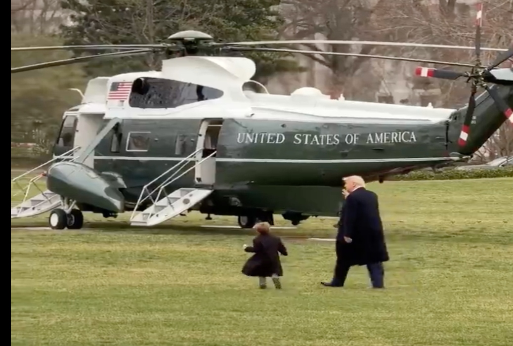 Οι εικόνες με τον Τραμπ και τον 4χρονο γιο του Μασκ έγιναν viral. Όπως μπορείτε να δείτε, οι δυο τους κατευθύνονται προς το Marine One στο South Lawn.
