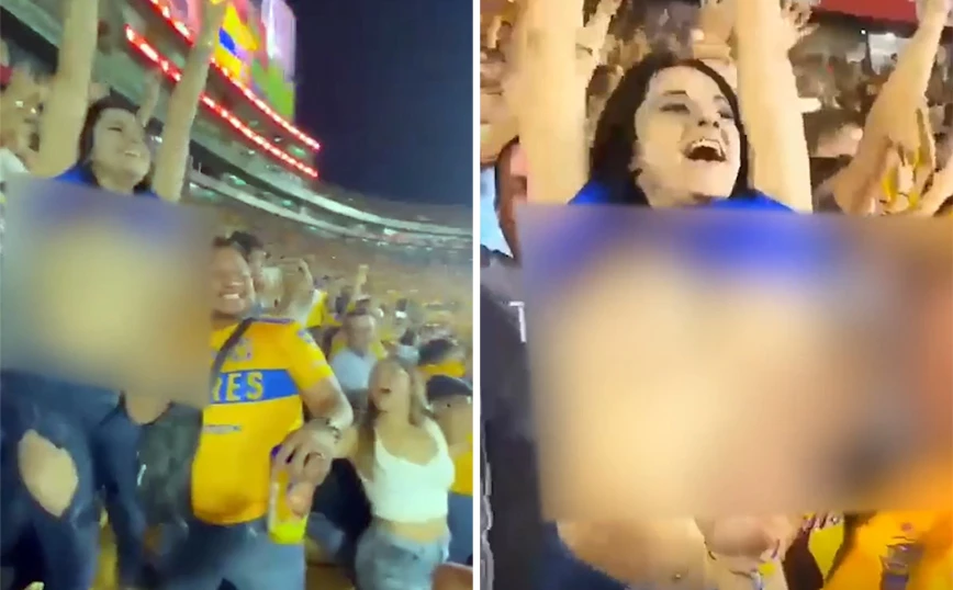 Στις εικόνες, η φίλαθλος φαίνεται να σηκώνει τη μπλούζα της και να δείχνει το στήθος της στο πλήθος. Χοροπηδάει ενθουσιασμένη μπροστά σε χιλιάδες ακόμη που πανηγυρίζουν.