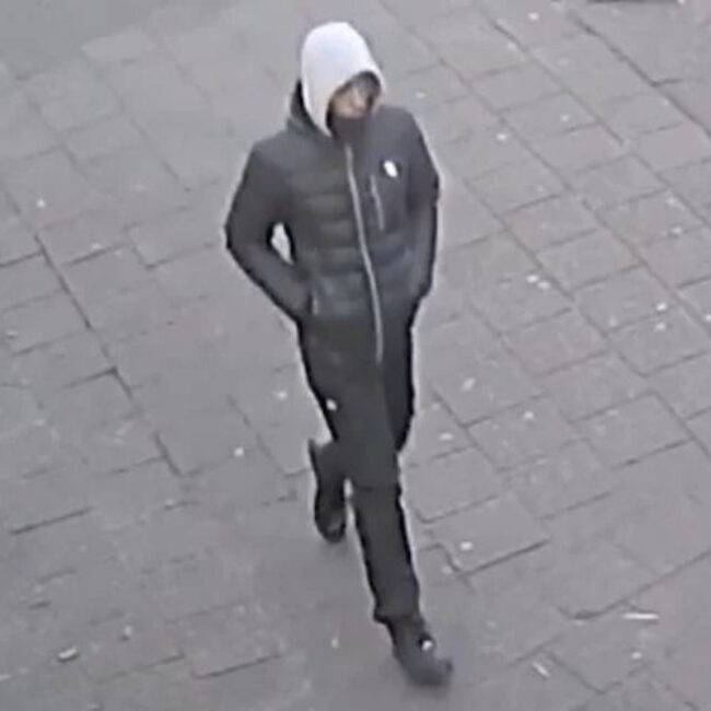 Ο ύποπτος περιγράφηκε ως ένας άνδρας με ανοιχτόχρωμη επιδερμίδα, ο οποίος εθεάθη τελευταία φορά να φοράει ένα μαύρο μπουφάν North Face πάνω από ένα γκρι φούτερ με κουκούλα. Φορούσε σκούρο παντελόνι και σκούρα παπούτσια όταν καταγράφηκε στην κάμερα περίπου την ίδια στιγμή που ο 81χρονος πυροβολήθηκε.