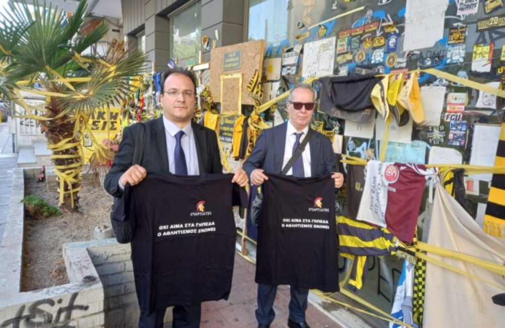 Συγκεκριμένα στα πλαίσια της παρουσίας κλιμακίου υπό τον Πρόεδρο της Κ.Ο., Βασίλη Στίγκα, με αφορμή τους εορτασμούς της Θεσσαλονίκης, ο Βουλευτής Α’ Θεσσαλονίκης, Ιωάννης Κόντης και ο Βουλευτής Β’ Θεσσαλονίκης, Πέτρος Δημητριάδης, κατέθεσαν συμβολικά στο μνημείο του αδικοχαμένου 19χρονου οπαδού από μια μπλούζα στην οποία αναγράφεται το μήνυμα: «ΟΧΙ ΑΙΜΑ ΣΤΑ ΓΗΠΕΔΑ – Ο ΑΘΛΗΤΙΣΜΟΣ ΕΝΩΝΕΙ».