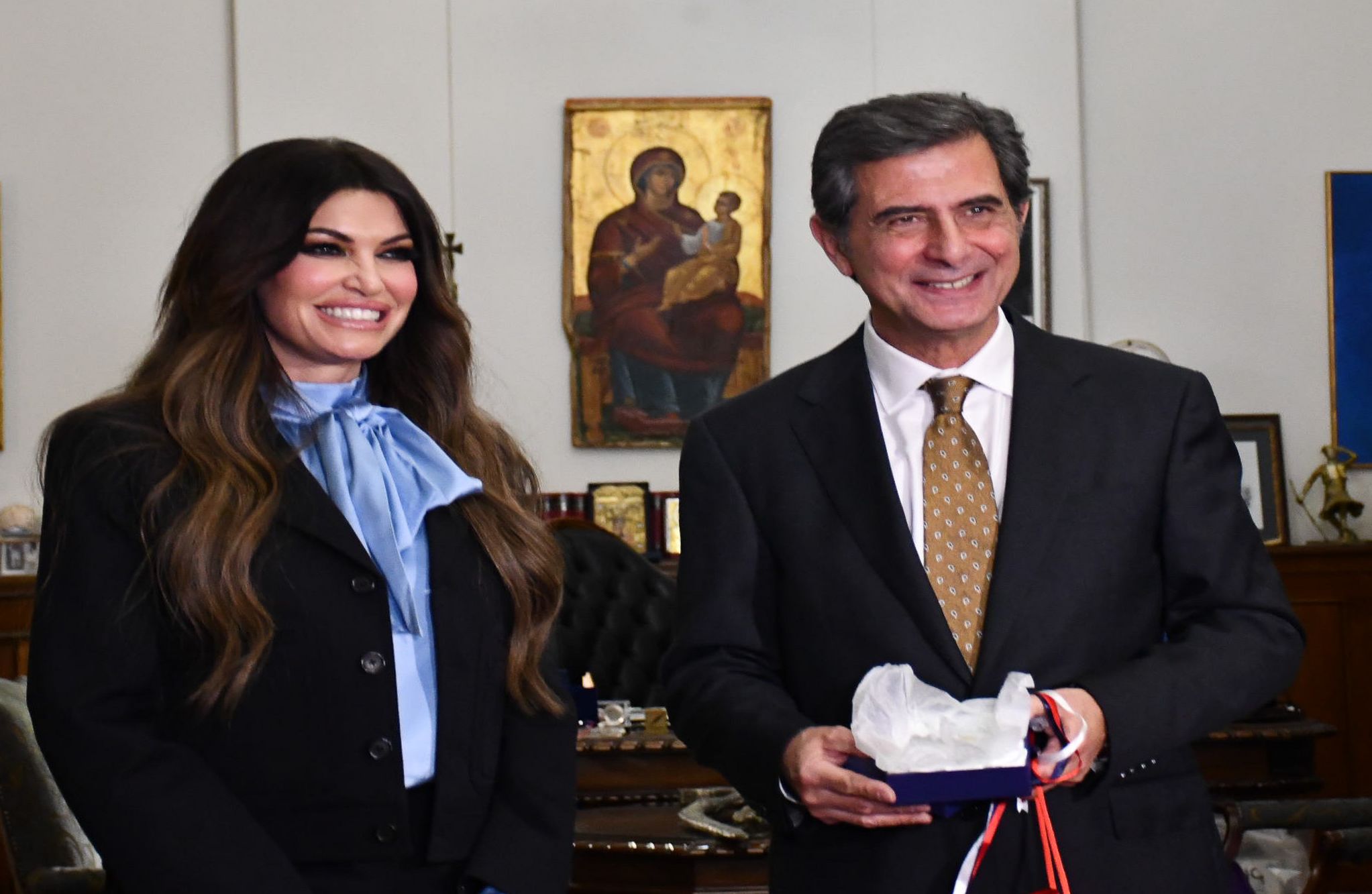 Ο Υφυπουργός Εσωτερικών πρόσφερε στην νέα Πρέσβη των ΗΠΑ ως αναμνηστικά δώρα δυο Ειδικές Εκδόσεις για το Άγιον Όρος, ένα αντίγραφο του Πρωτοκόλλου Παράδοσης της Θεσσαλονίκης του 1912 και ένα σετ με αντίγραφα της σφραγίδας της Φιλικής Εταιρείας και μεταλλίου που είχε επιδώσει ο Όθωνας στους αγωνιστές του 1821.