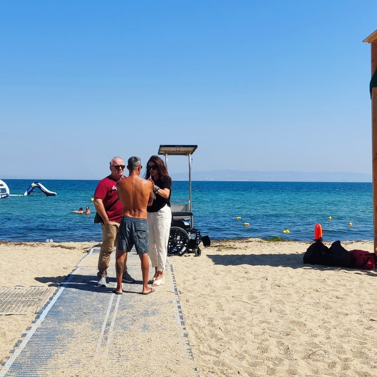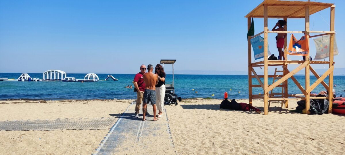 Η Αντιπεριφερειάρχης και ο Δήμαρχος παρακολούθησαν από κοντά το έργο που επιτελείται από το σύστημα πρόσβασης ΑΜΕΑ στη θάλασσα και συνομίλησαν με τους πολίτες με αναπηρία και τις οικογένειες τους, που επισκέπτονται την Παραλία των Νέων Επιβατών για να απολαύσουν τη θάλασσα και την παραλία.