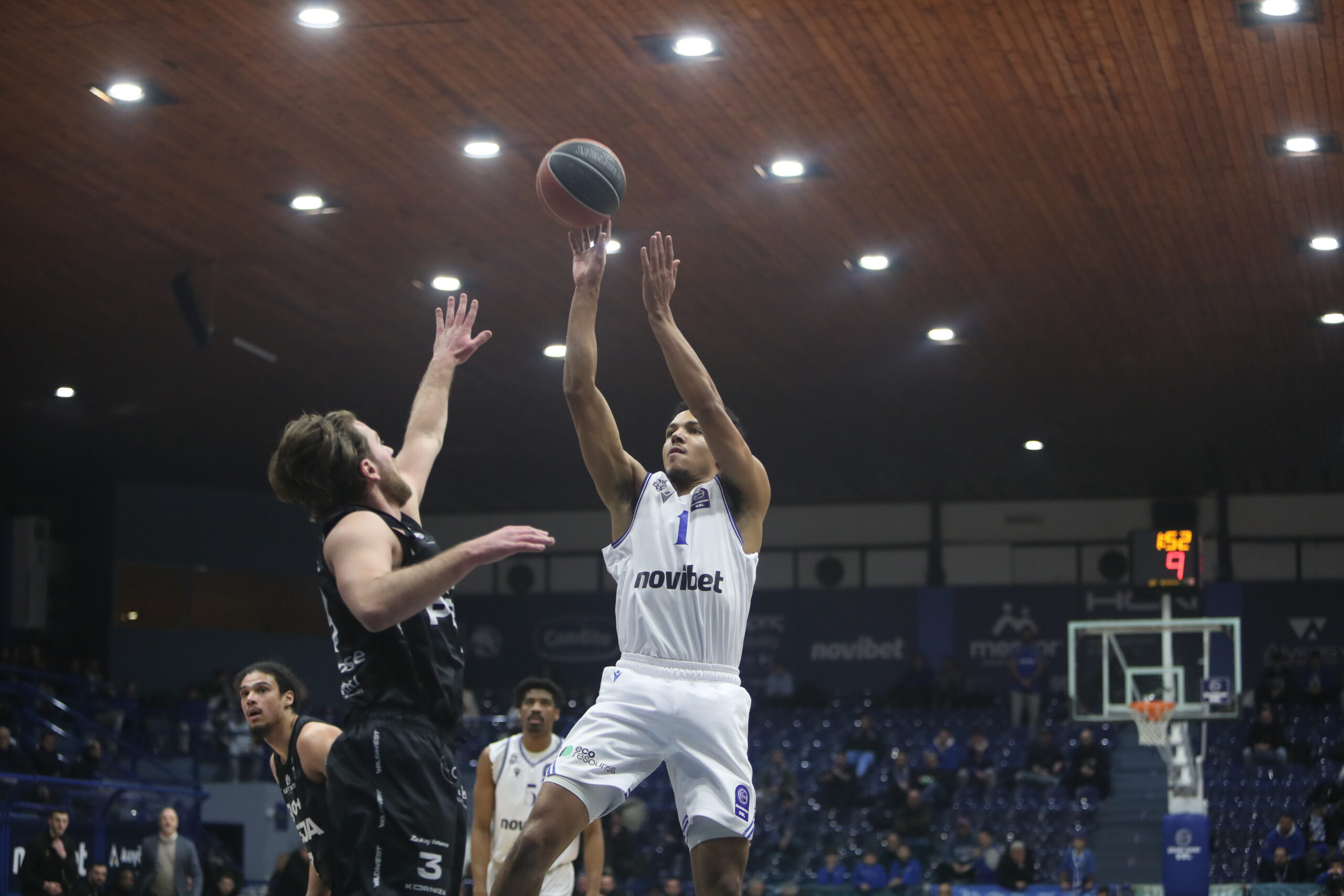 Ο Τζάστιν Ράιτ Φόρμαν (19π.) έβαλε το “τρένο” στις ράγες με 3/3 τρίποντα στις ισάριθμες πρώτες επιθέσεις κι οι συμπαίκτες του ακολούθησαν, με τον Τζάστιν Έντλερ Ντέιβις να φτάνει στους 23 πόντους με 4/6 τρίποντα και τον Σμιθ στους 22 πόντους με 9 ριμπάουντ.
