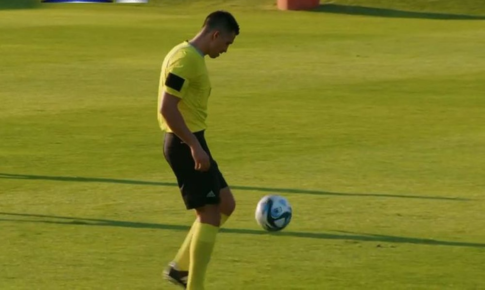 Επίδειξη τεχνικής από τον διαιτητή στο φινάλε του ημιχρόνου.