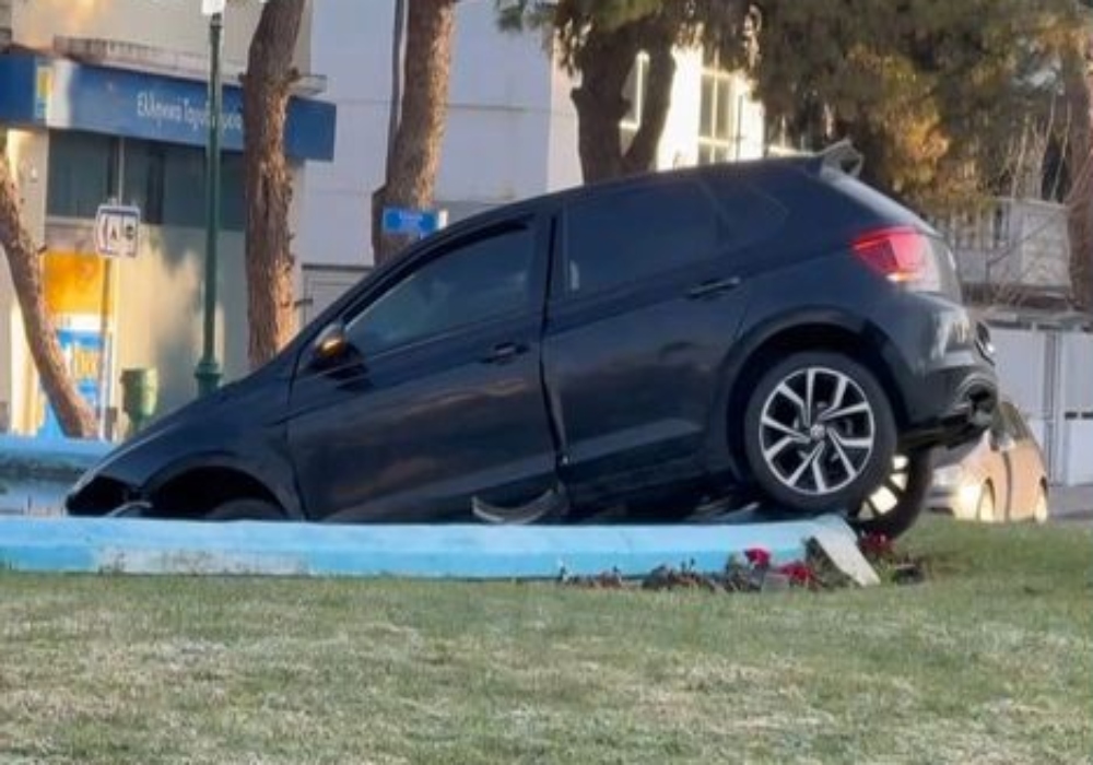 Αμάξι “βούτηξε”… σε συντριβάνι (vid)