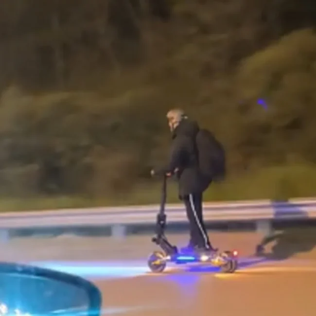 Σε έναν δρόμο που τα οχήματα κινούνται με μεγάλες ταχύτητες, το συγκεκριμένο άτομο αποφάσισε να κινηθεί με ηλεκτρικό πατίνι. Αξίζει ωστόσο να σημειωθεί πως ο χρήστης του πατινιού φορούσε κράνος ενώ το πατίνι διέθετε και φώτα.