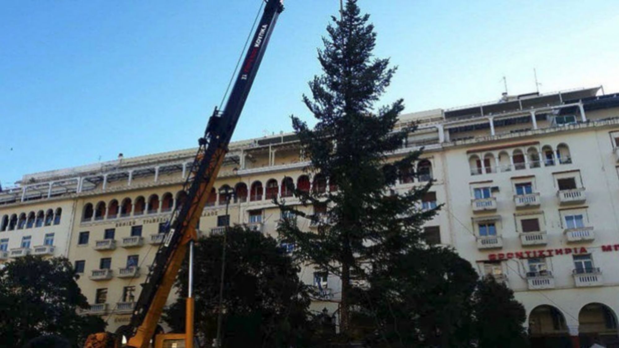 Έφτασε το Χριστουγεννιάτικο έλατο, ύψους 18 μέτρων, στην Πλατεία Αριστοτέλους