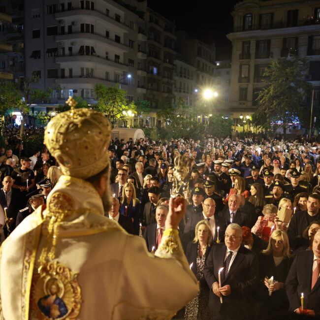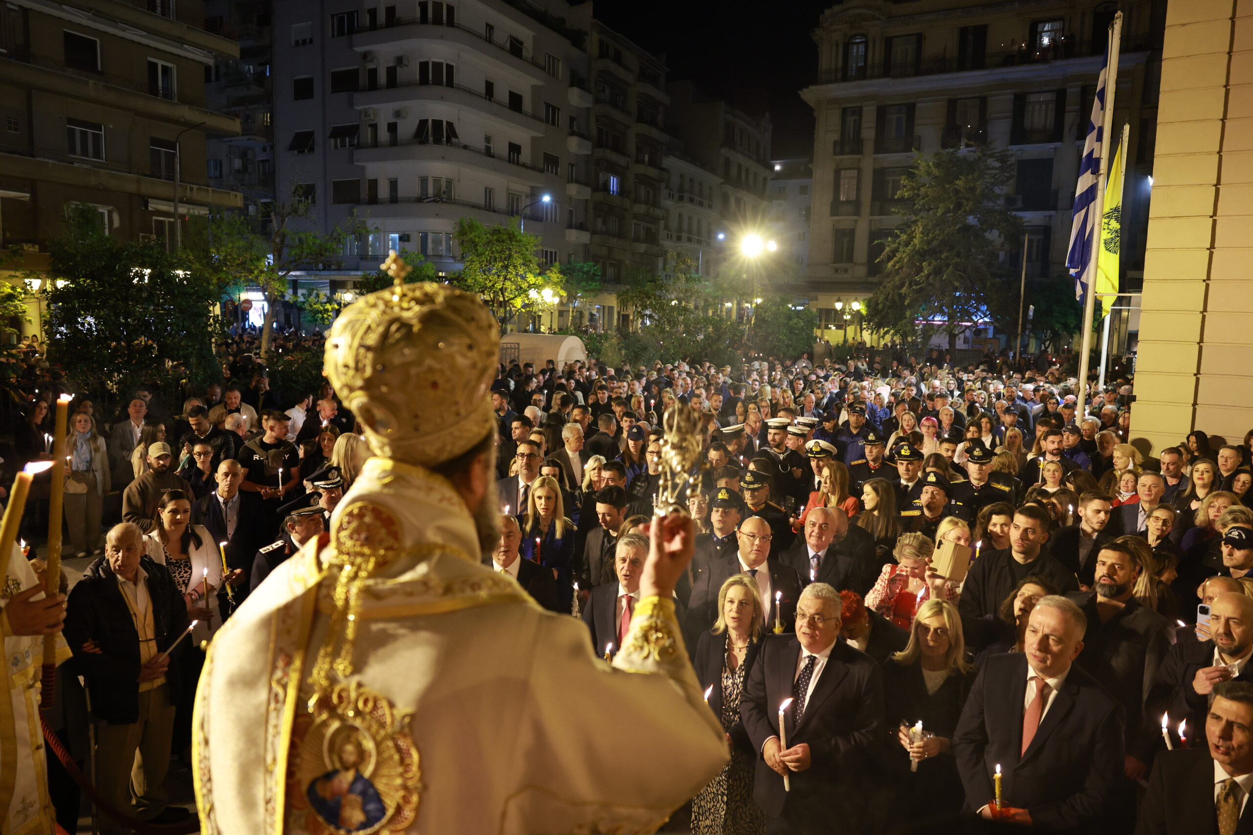 Σε κλίμα βαθιάς κατάνυξης, με την ανάλογη λαμπρότητα και τις καμπάνες να χτυπούν χαρμόσυνα, ακούστηκε το οικουμενικό μήνυμα της Αναστάσεως στη Θεσσαλονίκη, σε όλους τους ιερούς ναούς που είχαν κατακλυστεί από πιστούς.