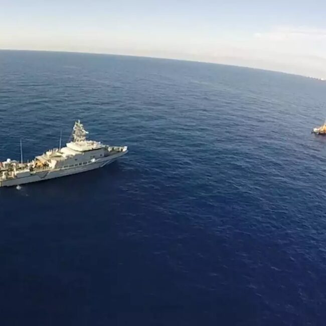 Επιπροσθέτως, δεύτερο παραπλέον Δ/Ξ πλοίο ανέλαβε να προσεγγίσει το Α/Κ σκάφος προς παροχή τροφοεφοδίων, αναφέροντας άρνηση του Α/Κ και κίνηση του με ίδια μέσα με δυτική πορεία. Εν τέλει, ανωτέρω Δ/Ξ ξεκίνησε τη διαδικασία παροχής τροφοεφοδίων στους επιβαίνοντες του Α/Κ σκάφους. Αφού ολοκληρώθηκε αυτή η διαδικασία, οι επιβαίνοντες του Α/Κ άρχισαν να πετούν στη θάλασσα τα εφόδια.