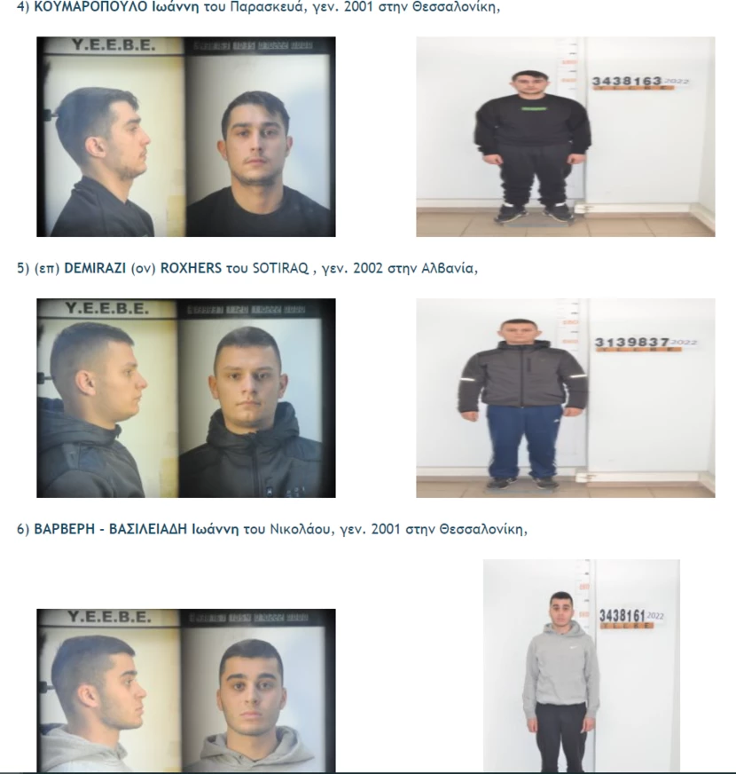 Δίνονται στη δημοσιότητα, κατόπιν σχετικής Διάταξης της Εισαγγελίας Πρωτοδικών Θεσσαλονίκης, τα στοιχεία ταυτότητας και οι φωτογραφίες δώδεκα (12) ατόμων , οι οποίοι συνελήφθησαν για την υπόθεση ανθρωποκτονίας σε βάρος 19χρονου ημεδαπού στην περιοχή Χαριλάου την 01-02-2022 (σχετικά τα από 01-02-2022, 02-02-2022, 06-02-2022, 06-02-2022, 06-02-2022, 08-02-2022, 14-02-2022 δελτία τύπου που εκδόθηκαν από την Υπηρεσία μας).