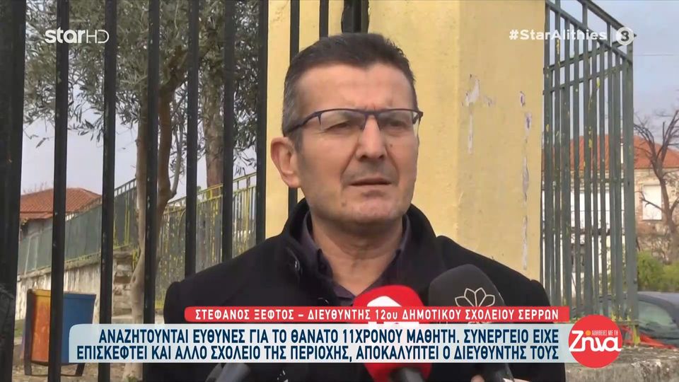 Ο διευθυντής του σχολείου στις Σέρρες όπου έγινε η τραγωδία με το θάνατο του παιδιού, Στέφανος Ξέφτος, μίλησε για την τραγική μέρα που ο 11χρονος έχασε τη ζωή του.