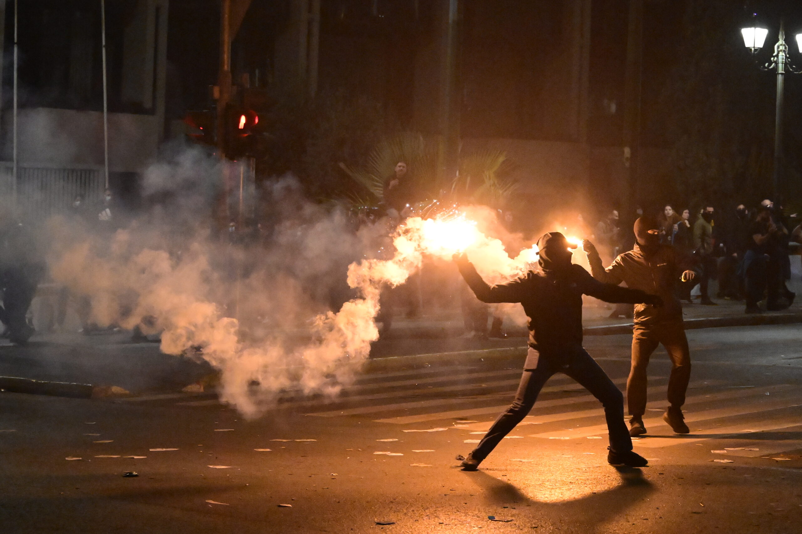 Οι δράστες απομακρύνθηκαν άμεσα από το σημείο και αναζητούνται από την Ελληνική Αστυνομία, η οποία διερευνά το περιστατικό και τα κίνητρα πίσω από την επίθεση.