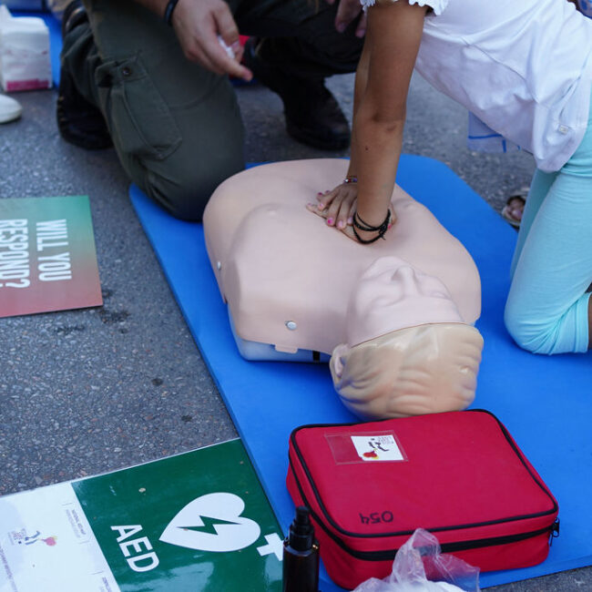 Στο πλαίσιο της εκδήλωσης έγινε επίδειξη ΚΑΡΠΑ -απινίδωσης από δύο εκπαιδευμένες μαθήτριες, ακολούθησε ταυτόχρονη ΚΑΡΠΑ και ανακοινώθηκε η τοποθέτηση 100 απινιδωτών και shock station ισάριθμα σχολεία.