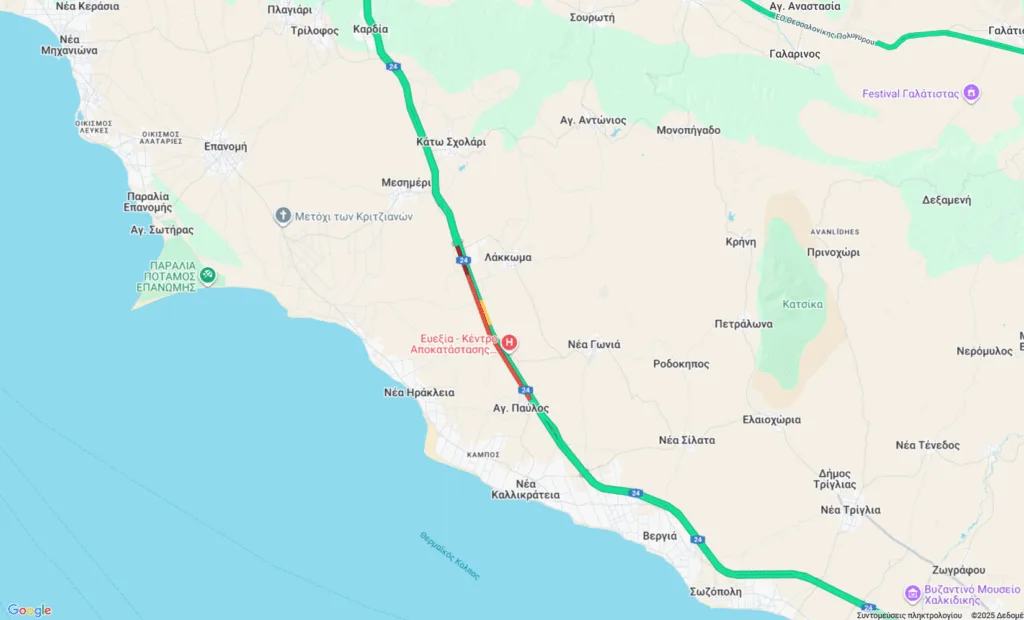 Καθυστερήσεις και πολύ χαμηλές ταχύτητες σημειώνονται αυτή την ώρα στην Εθνική Οδό Θεσσαλονίκης Μουδανιών, στο ρεύμα προς Χαλκιδική.