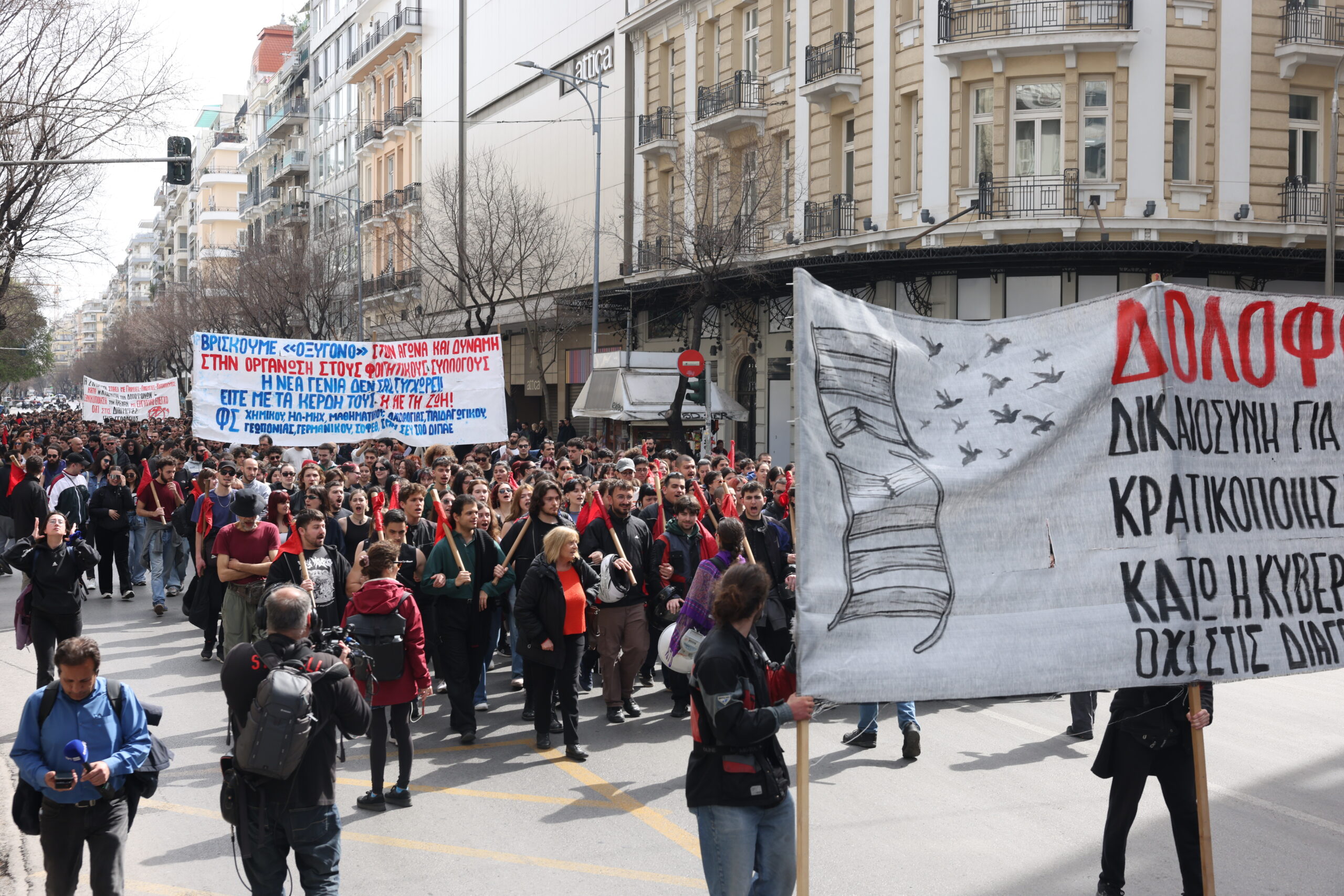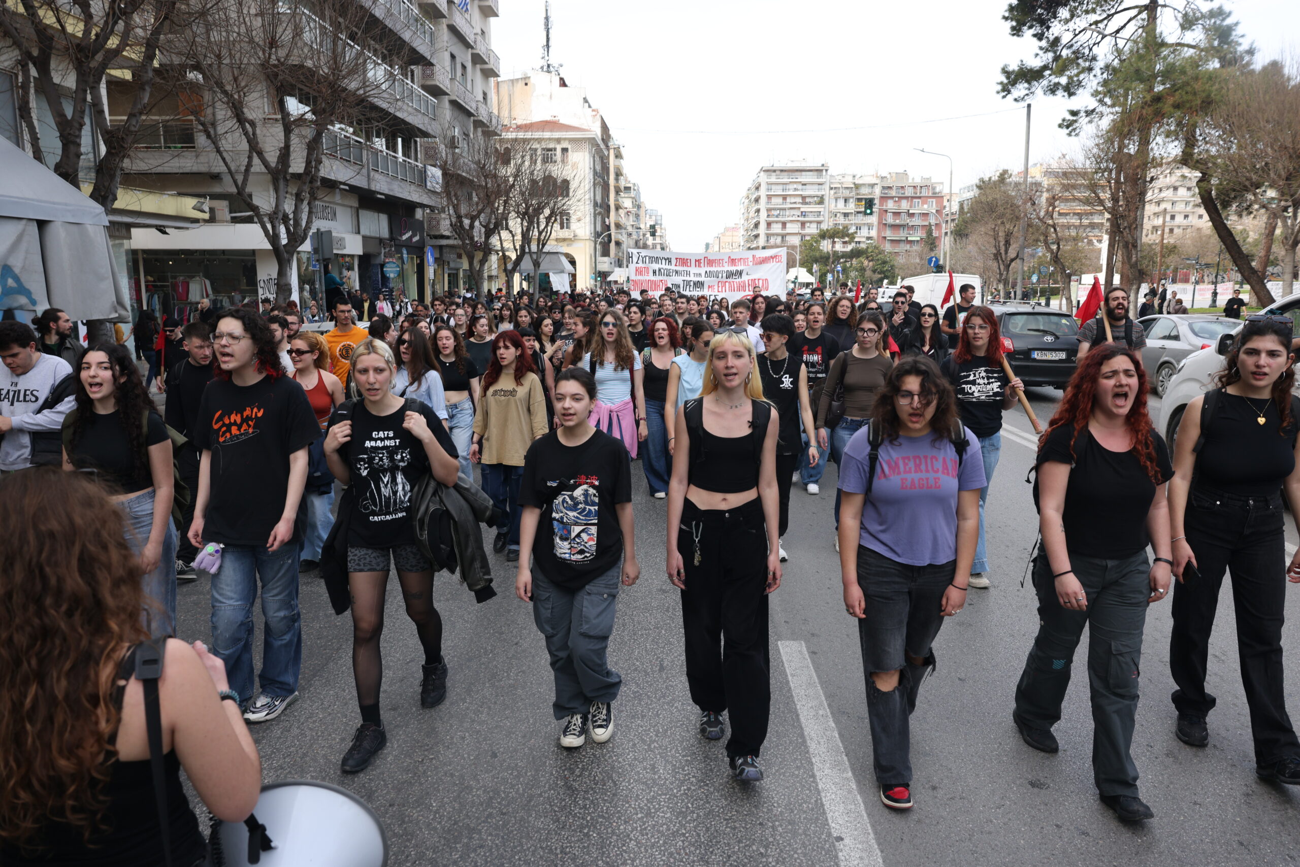 Συγκέντρωση και πορεία φοιτητών του ΑΠΘ και του Πανεπιστημίου Μακεδονίας για το σιδηροδρομικό δυστύχημα των Τεμπών, στην Θεσσαλονίκη, Πέμπτη 13 Μαρτίου 2025.
