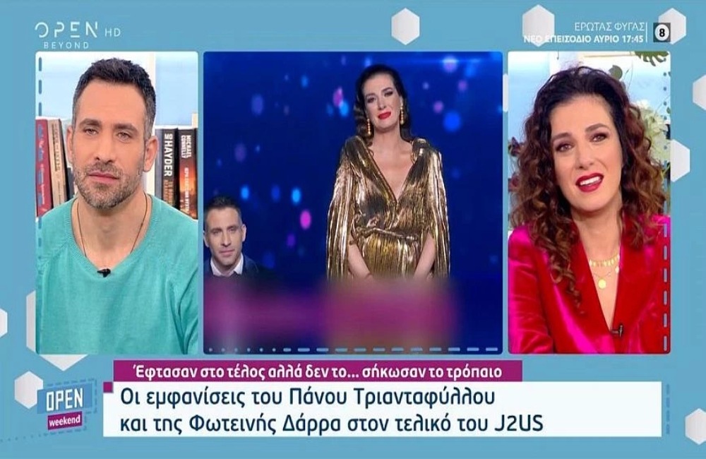 Η Φωτεινή Δάρρα προσκεκλημένη στο Open Weekend και την Ελένη Τσολάκη απάντησε για όλα όσα είπε ο Ανδρέας Μικρούτσικος στον αέρα της εκπομπής «Super Κατερίνα», αλλά και για τα πλάνα του τελικού του J2US.