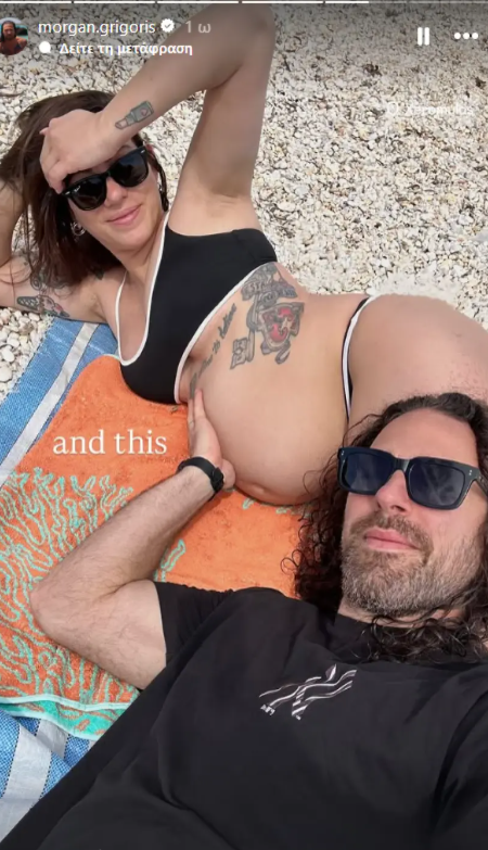 Σε στιγμιότυπο που δημοσίευσε ο σύζυγος της αθλητικογράφου στον λογαριασμό του στο Instagram, έδειξε την εγκυμονούσα να έχει ξαπλώσει στην πετσέτα της και ενώ φορούσε το μαγιό της, ο Γρηγόρης Μόργκαν κρατούσε τη φουσκωμένη της κοιλιά.