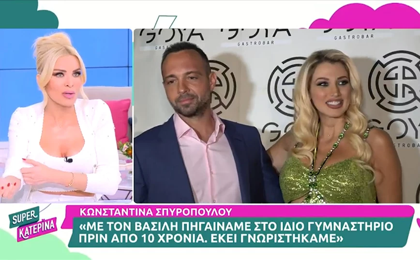 Με αφορμή τη συνέντευξη που παραχώρησε η Κωνσταντίνα Σπυροπούλου στην Ελένη Μενεγάκη, προβλήθηκε ένα σχετικό απόσπασμα στην εκπομπή της Κατερίνα Καινούργιου. Η παρουσιάστρια του «Super Κατερίνα» αναφέρθηκε στη σχέση της με τον επιχειρηματία στο παρελθόν και σημείωσε ότι αν μπορούσε να διαγράψει όσα έχουν να κάνουν με αυτή τη σχέση στο διαδίκτυο, θα το έκανε.