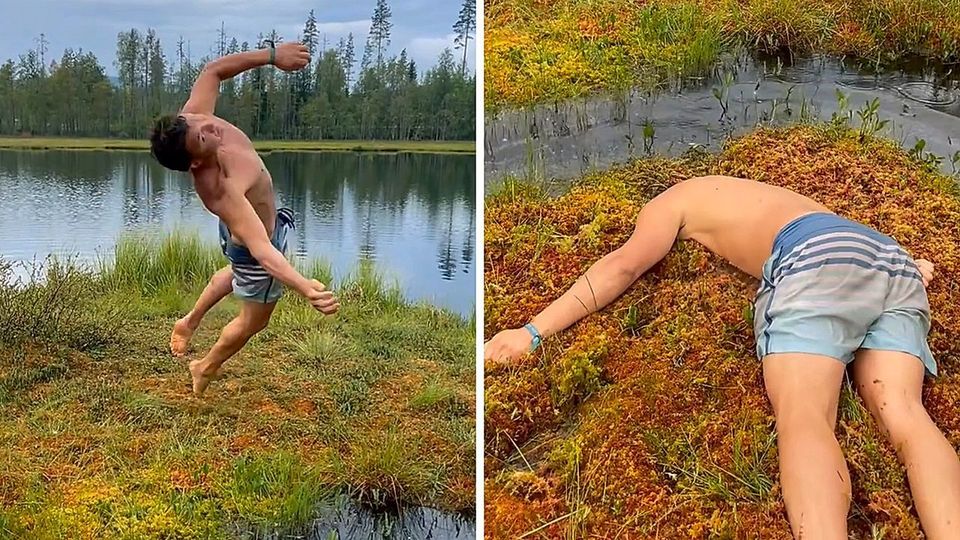 Αυτά παθαίνεις όταν είσαι άμαθος στις υψηλές θερμοκρασίες… Παρέα φίλων στην Νορβηγία επιδόθηκε σε κάπως ανορθόδοξες, σίγουρα κωμικές ασκήσεις δροσιάς και γυμναστικής σε βάλτο της περιοχής στις 16 Ιουλίου.