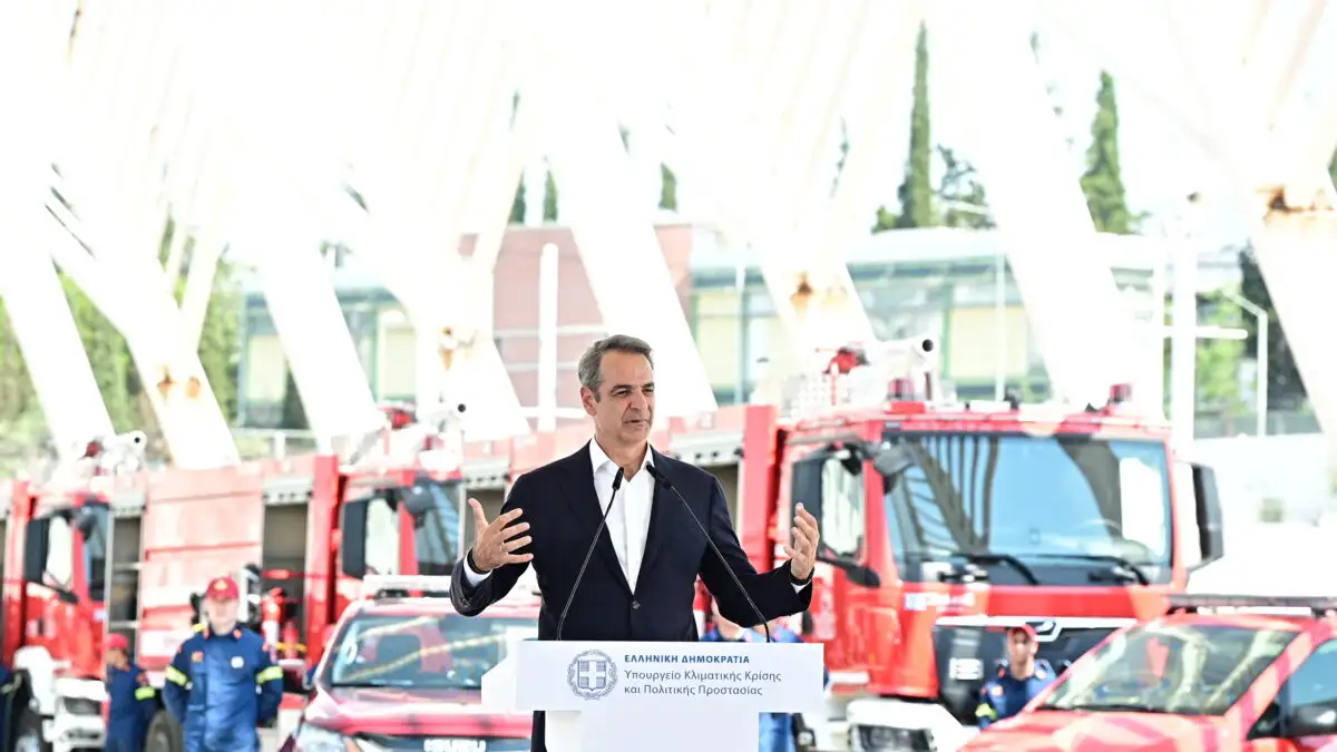 «Είμαστε στην καρδιά της φετινής αντιπυρικής περιόδου που αποδεικνύεται από τις πιο απαιτητικές των τελευταίων ετών», είπε ο πρωθυπουργός Κυριάκος Μητσοτάκης στην παρουσίαση των 164 οχημάτων της Πυροσβεστικής σε ειδική τελετή στο ΟΑΚΑ.