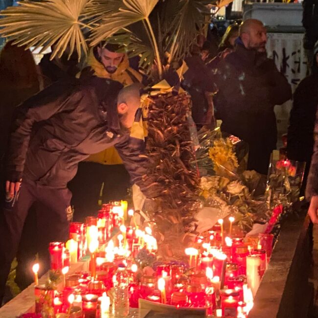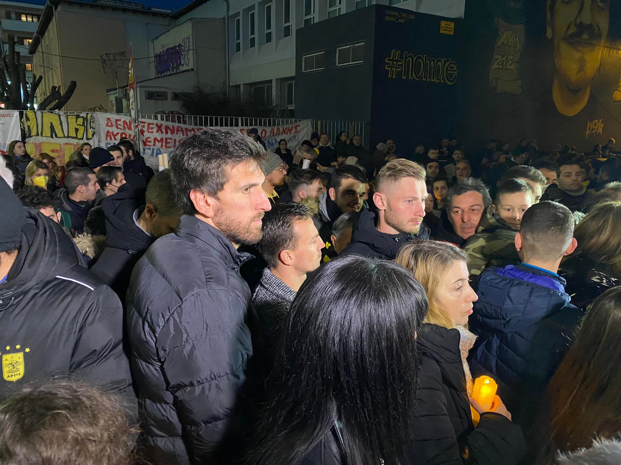 Πλήθος κόσμου συγκεντρώθηκε στο σημείο της άγριας δολοφονίας του Άλκη Καμπανού την 1η Φεβρουαρίου 2022.