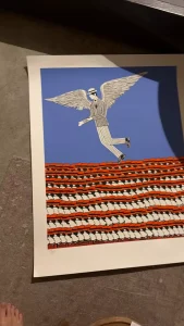 Ιδιαίτερο ενδιαφέρον προκάλεσε και μια ανάρτησή της που αποκαλύπτει την αγάπη της για την ελληνική τέχνη. Όπως φαίνεται, η Ratajkowski επένδυσε σε έργο του σπουδαίου Έλληνα καλλιτέχνη Γιάννη Γαίτη, αποκτώντας ένα αντίτυπο του εμβληματικού πίνακα «Ιπτάμενος Άνθρωπος», ένα από τα χαρακτηριστικά έργα του καλλιτέχνη.