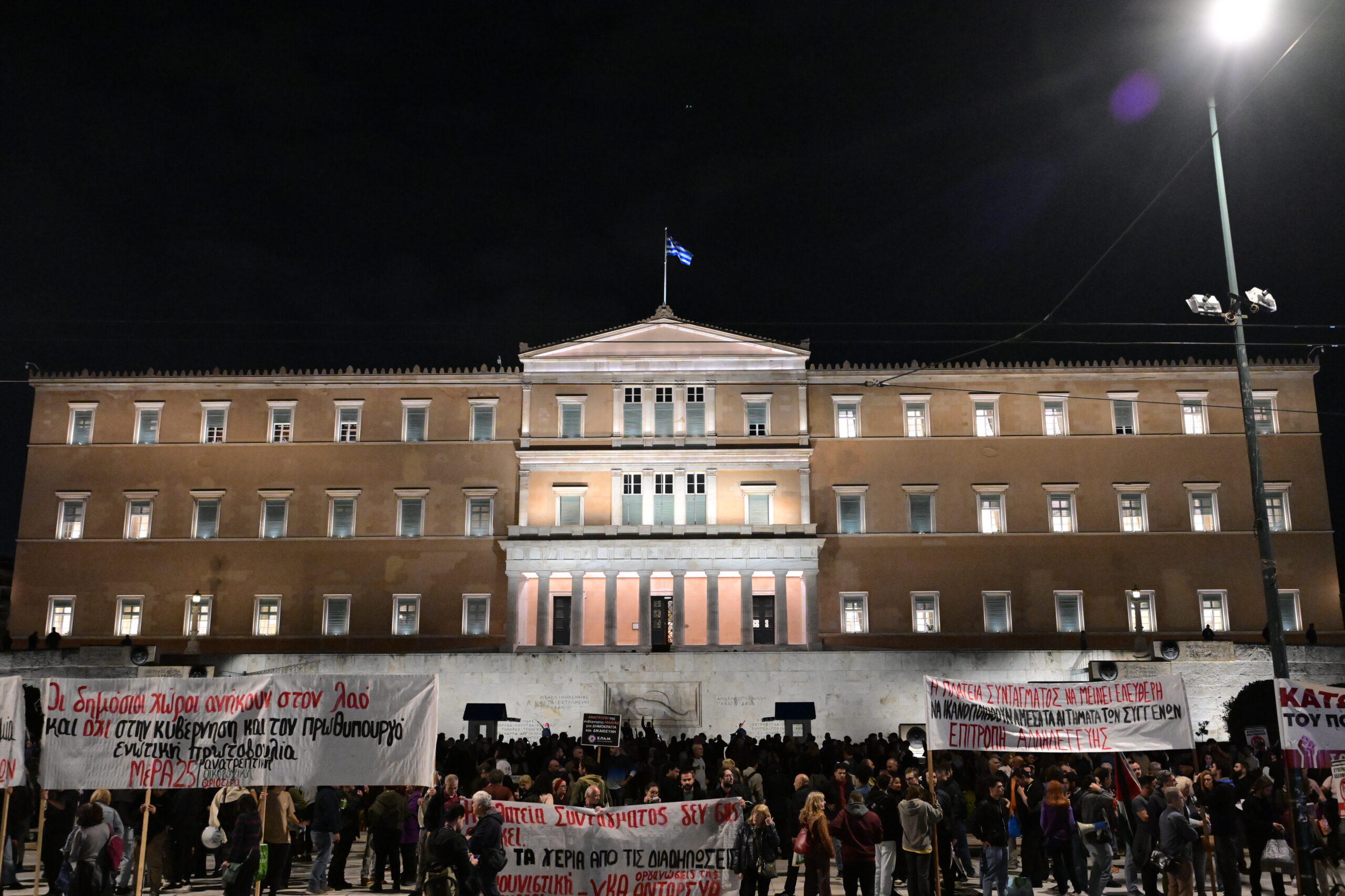 Σε εξέλιξη βρίσκεται η συγκέντρωση διαμαρτυρίας στο Σύνταγμα, που πραγματοποιούν οργανώσεις και κοινοβουλευτικά κόμματα, για την αλλαγή καθεστώτος φύλαξης του Μνημείου του Αγνώστου Στρατιώτη