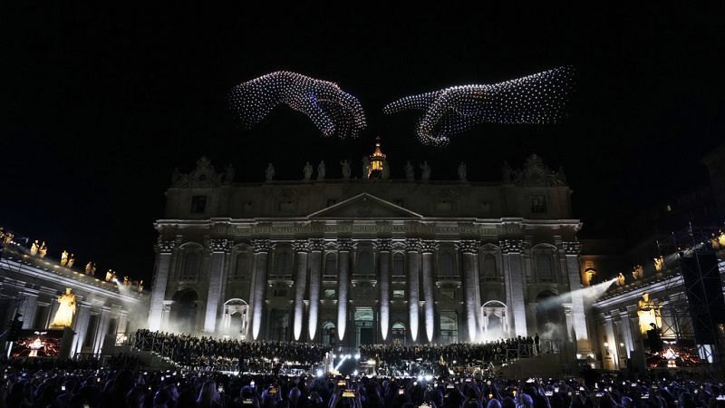 Δεκάδες χιλιάδες άνθρωποι κατέκλυσαν την πλατεία του Αγίου Πέτρου στο Βατικανό για μια μοναδική συναυλία, που ολοκληρώθηκε με ένα θεαματικό σόου με drones.